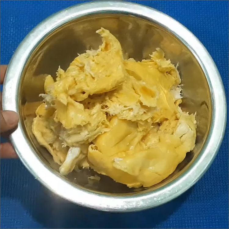 - Tách lấy 300g cơm sầu riêng, bỏ hạt. Chọn những múi sầu riêng chín đều, màu vàng tươi, không bị dập để đảm bảo kem có hương vị thơm ngon. Nếu thích kem có thêm texture, bạn có thể để riêng 50g cơm sầu riêng cắt nhỏ để trộn vào sau.